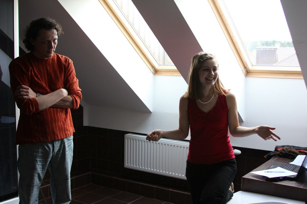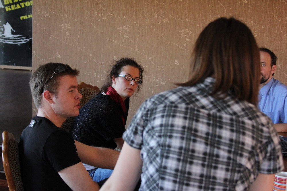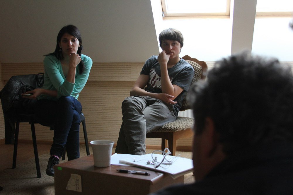 - Влада Сенькова, Михаил Шпилевский, Анна Карпушина, Антон Нехай на этапе разработки сценария клипа (киношкола, Минск, Беларусь, 2011 год)